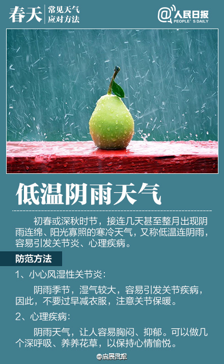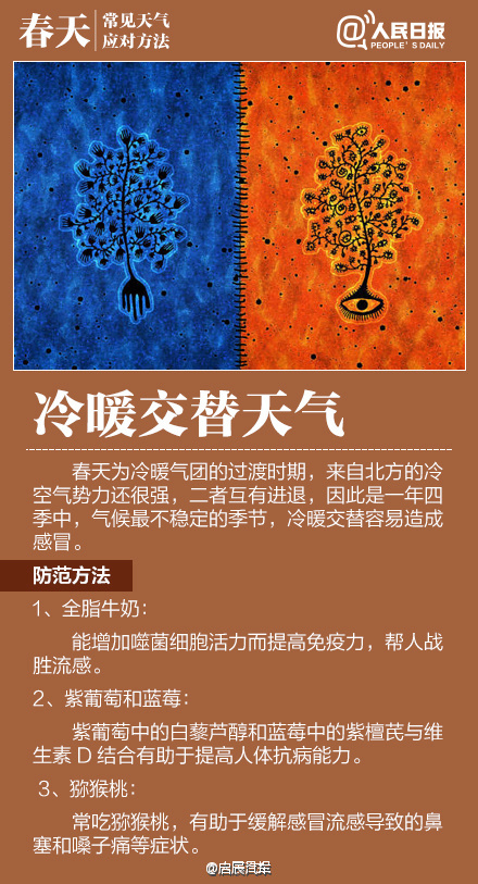 如何應對初春多變天氣作者:合眾電氣發布時間:2016-03-23瀏覽量:11314 次字體顯示:【大】【中】【小】 春季天氣調皮,昨天還日光融融閑賞花,今日就寒風瑟瑟緊添衣!大風、沙塵、陰雨等交替上演,讓感冒、過敏、關節炎等進入高發期。今天#世界氣象日#,四張圖教你應對春季多變天氣! 上一篇: HZXC-104D變壓器智能控制箱最新發貨現場下一篇: 面對問題疫苗,我們怎么辦?