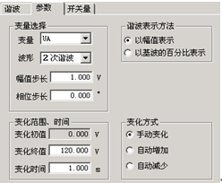 變化初值:變化初值是前面所設置好的諧波的值。初值是從前頁的諧波數據頁面中取來的,不能直接修改。要修改這個初值必須在諧波數據頁面里進行。初值在這里以幅值的方式表示。