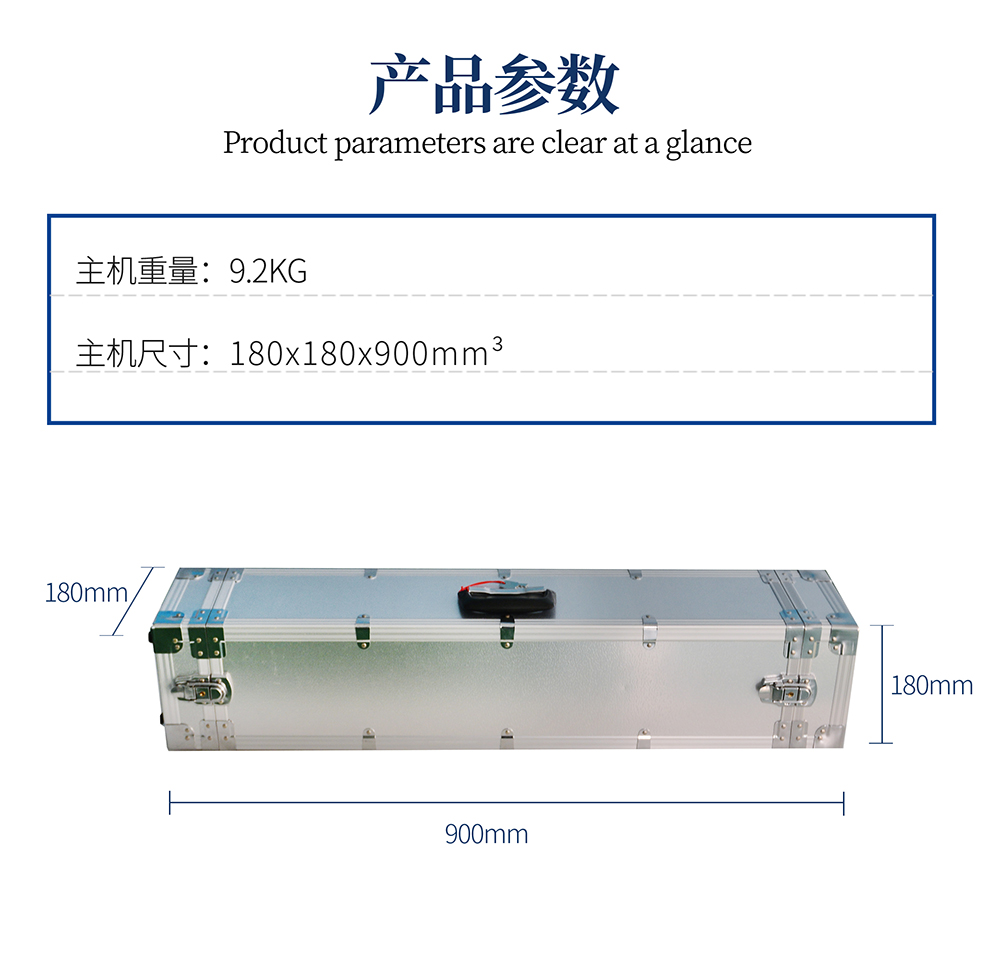 采用便攜式結構,整機用鋁合金包裝箱作機殼,可方便地拆裝。體積小、重量輕,便于攜帶,使用十分方便。