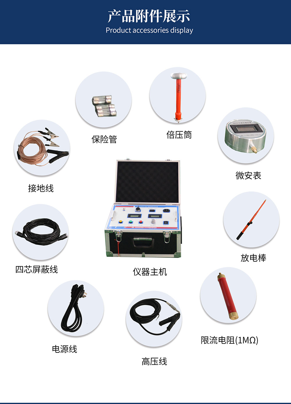 (1)精度高、測量準確。控制箱上電壓表直接顯示加在負載試品上的電壓值,使用時無需外加分壓器,接線簡單。儀器具有高、低壓端測量泄漏電流,高壓端采用圓形屏蔽數字表顯示,不怕放電沖擊,抗干擾性能好,適合現場使用。
