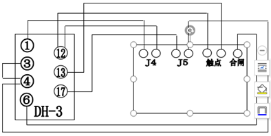 繼電保護(hù)測(cè)試儀按上圖接線,(3)(4)接J5黑柱(負(fù)端),(17)接J5紅柱(正端)